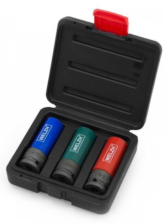 Welzh Werkzeug 3101-WW 1/2"-os erős gépi dugókulcs fej készlet alufelnihez, hosszított, 3 részes