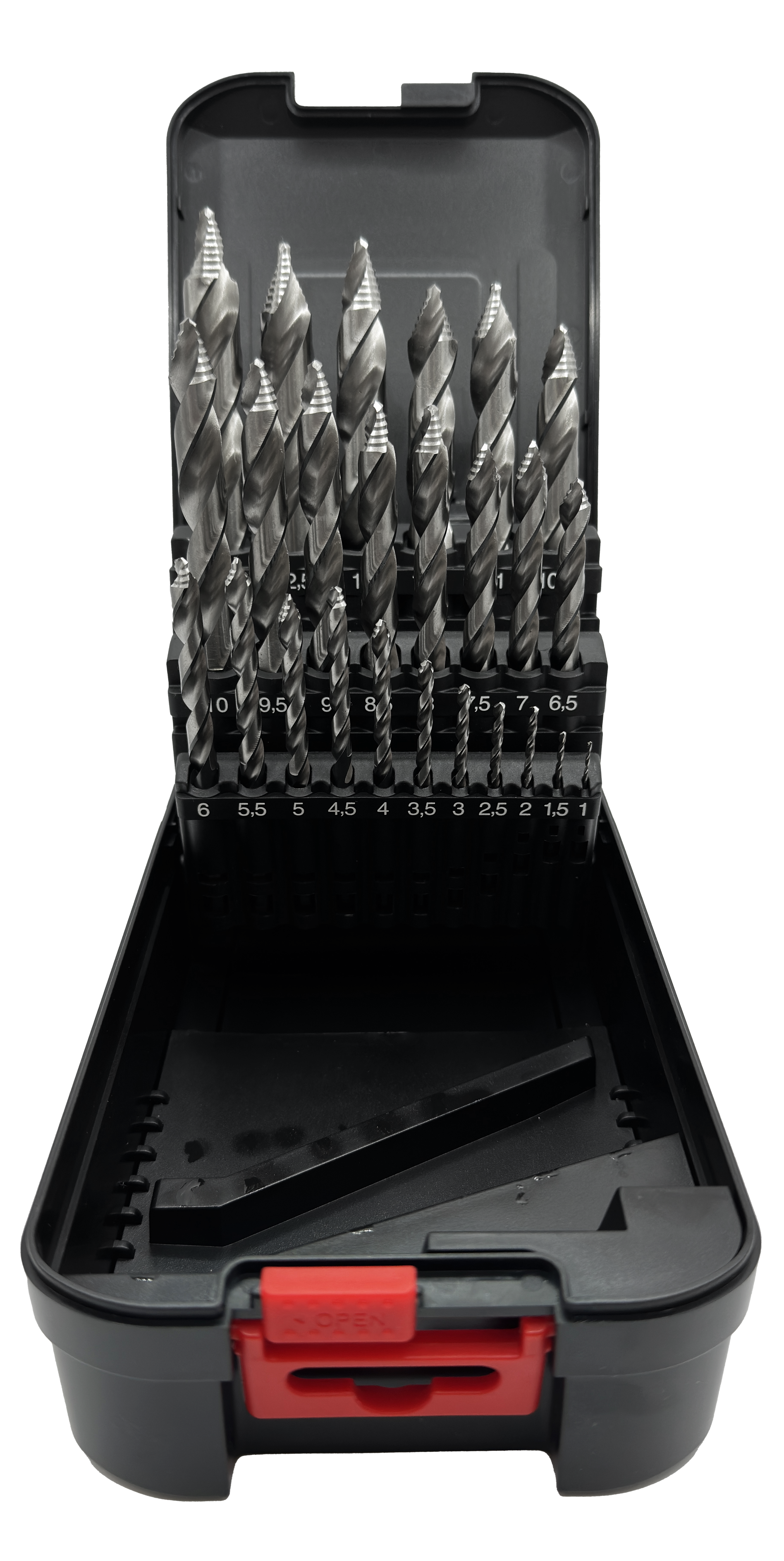 Abraboro HSS-G DIN 338 VULCANO 25 részes fémfúró készlet lépcsős fúrócsúcs-geometriával, műanyag dobozban
